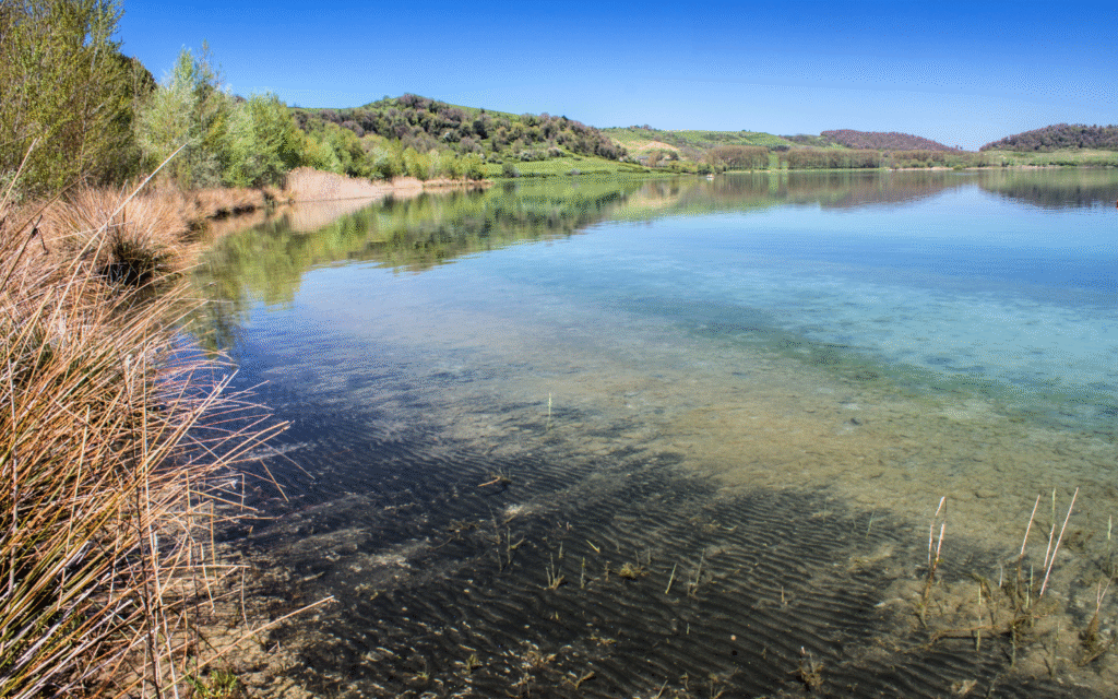 Meno affollato e più selvaggio di altri laghi vicino alla Capitale, è raggiungibile con una camminata (leggera) da Anguillara Sabazia. Qui niente pedalò, niente caos: solo acqua pulita, prati, e un paio di agriturismi dove mangiare come si deve. Un posto dove puoi stenderti sull’erba e dimenticarti dell’esistenza di Excel.