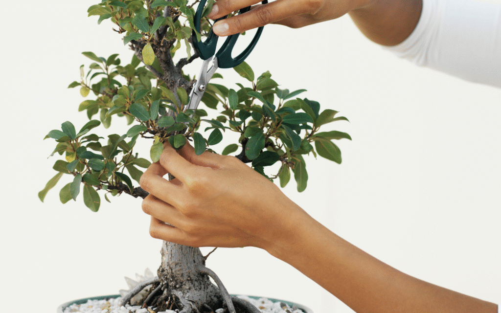 La potatura regolare è ciò che mantiene il bonsai ordinato e in forma: si rimuovono rami secchi o danneggiati e si lasciano quelli giovani, che portano nuova vita alla pianta. Anche le radici possono essere sfoltite, ma solo in concomitanza con il travaso.