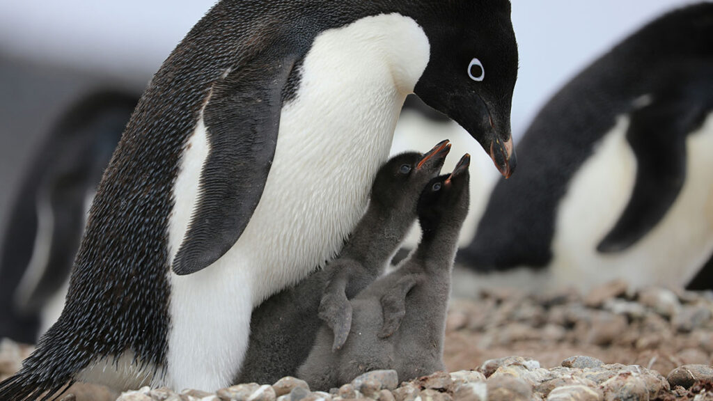 D’altronde, la scelta di un ottimo partner è di fondamentale importanza: in quasi tutte le specie di pinguini l’accudimento della prole è diviso equamente tra maschio e femmina e non capita di rado che sia proprio il padre a occuparsi dei piccoli, mentre la madre si tuffa in acqua per cercare cibo. Un partner debole, distratto o poco preparato alle sfide climatiche delle aree in cui i pinguini risiedono, rappresenterebbe un pericolo per i piccoli.