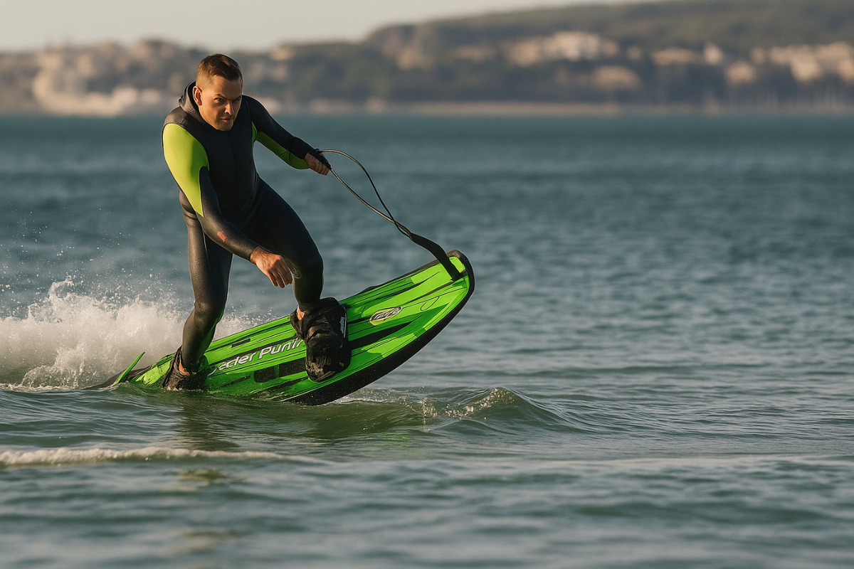 Il jet surf, o surf a motore, è una tavola che ha deciso di emanciparsi dalle onde e di farsi spingere da un motore. Esistono modelli a benzina e modelli elettrici, per accontentare sia gli amanti del rombo che quelli del silenzio ecologico. La propulsione avviene tramite un sistema a idrogetto, simile a quello delle moto d’acqua, che permette di raggiungere velocità fino a 57 km/h . Il tutto controllato da un acceleratore manuale, spesso collegato alla tavola tramite un cavo o un telecomando wireless.