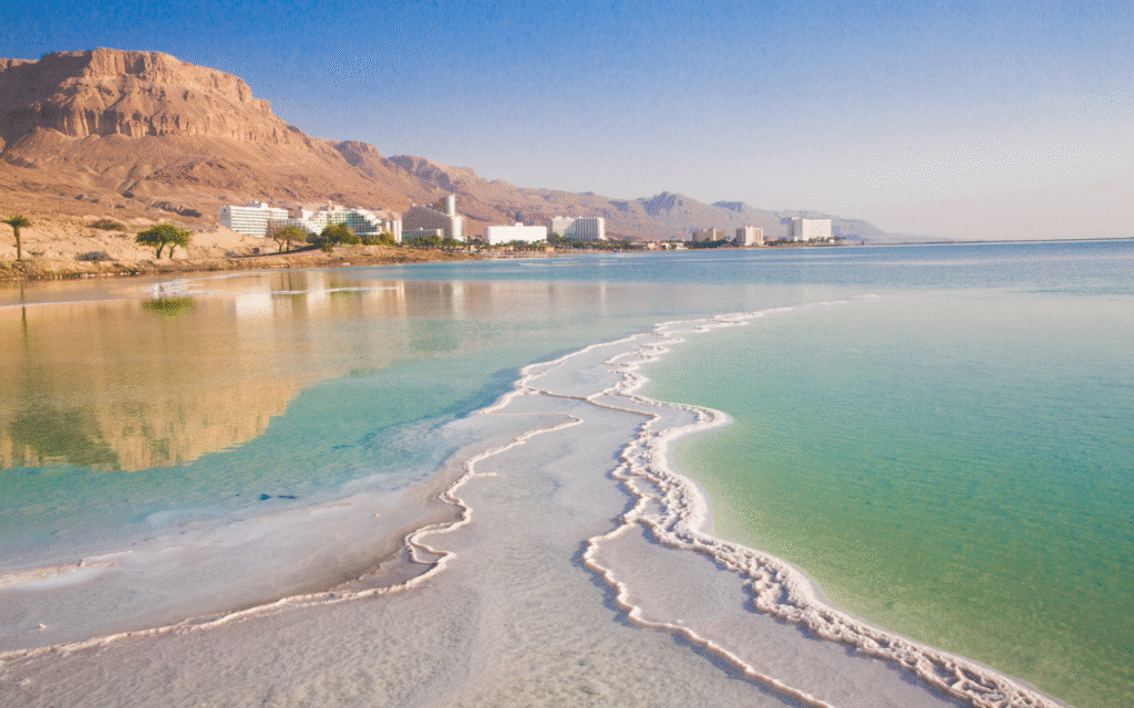 Il Mar Morto non è un mare, ma un lago endoreico, cioè senza sbocco al mare, alimentato principalmente dal fiume Giordano. La sua alta salinità è il risultato di un processo geologico e climatico: l’acqua affluisce ma non ha vie di uscita, evapora rapidamente a causa delle alte temperature, lasciando sul fondo depositi di sale e minerali.