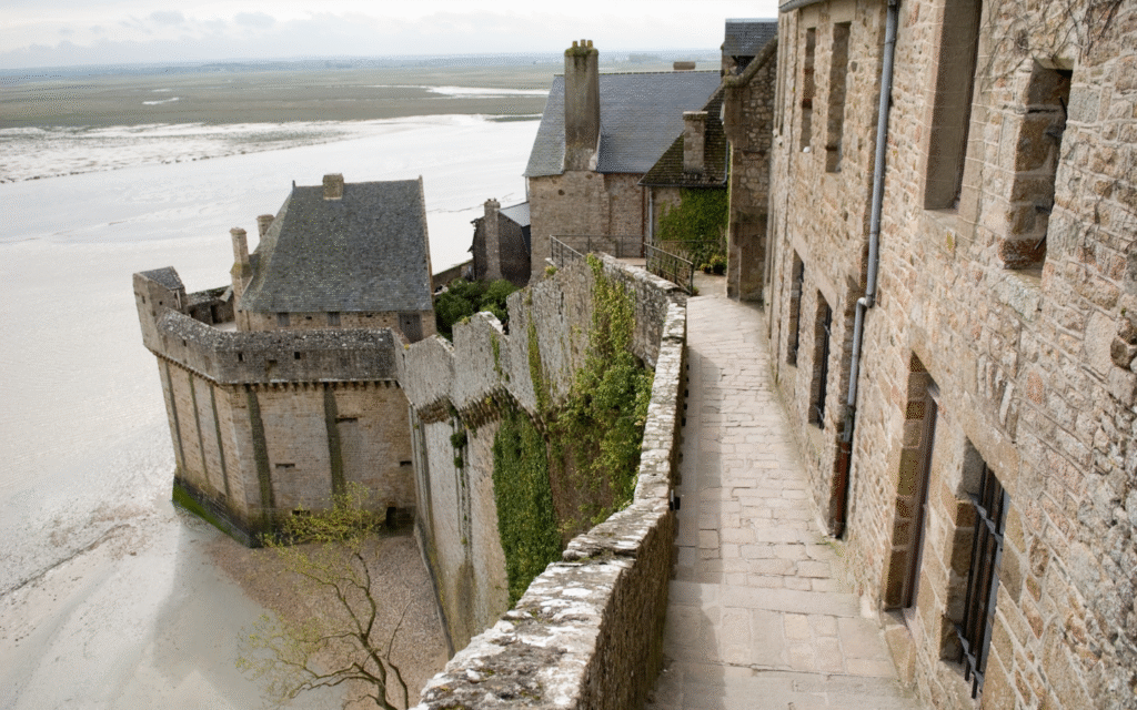 L’insediamento, iniziato nel VIII secolo, si sviluppò attorno a un santuario dedicato all’Arcangelo Michele. Secondo la leggenda, l’arcivescovo di Avranches, Aubert, ricevette in sogno l’ordine di costruire un oratorio sulla roccia. L’abbazia che oggi domina l’isola è il risultato di secoli di ampliamenti, crolli e ricostruzioni, in cui lo stile romanico si intreccia con quello gotico fiammeggiante. La complessità architettonica riflette la stratificazione del luogo: mura fortificate, case medievali, chiostri sospesi e sale monastiche che sembrano sfidare la gravità.