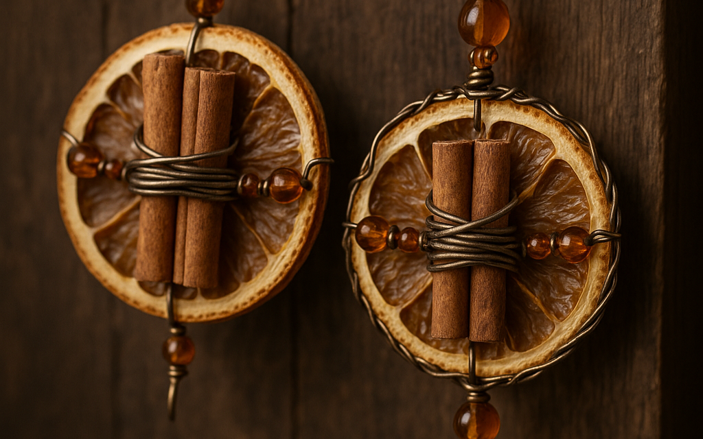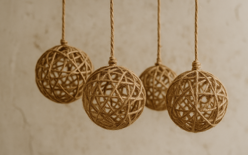 Queste palline profumate sono perfette per dare all’albero un’atmosfera calda e tipicamente natalizia. Prendi una fetta di arancia essiccata e fissala con una goccia di colla a un piccolo fascetto di cannella. Avvolgi il tutto con un giro di spago creando una forma tondeggiante, poi aggiungi un’asola nella parte superiore. Sono decorazioni leggere, naturali e molto scenografiche.