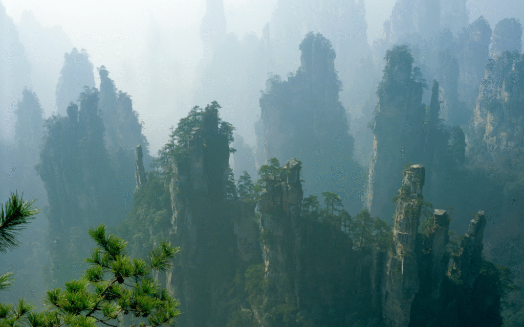 Questo equilibrio tra roccia e foresta, tra rigidità minerale e vitalità vegetale, è ciò che rende Zhangjiajie un luogo quasi surreale. Le sue forme evocano le montagne nebbiose dei dipinti shan shui, le stesse che per secoli hanno ispirato poeti, monaci e pittori cinesi.