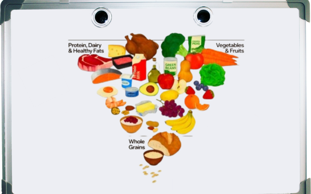 Per oltre trent’anni la piramide alimentare statunitense ha seguito uno schema fondato sui carboidrati: cereali alla base, frutta e verdura al centro, proteine e latticini in quantità moderate, grassi e zuccheri relegati al vertice. Un’impostazione nata negli anni Novanta, poi corretta con il modello MyPlate, che puntava a riequilibrare le porzioni riducendo l’eccesso di grassi saturi e colesterolo.