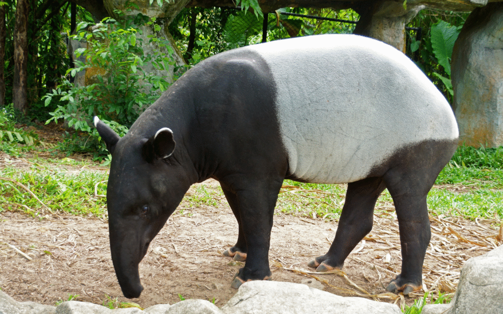 Una menzione a parte merita il tapiro della Malesia, l’unico con un mantello bicolore: nero anteriormente e posteriormente, bianco nella parte centrale del corpo, un disegno che lo rende facilmente distinguibile dalle altre specie. I piccoli alla nascita presentano un manto screziato con macchie e strisce bianche, un camouflage che ricorda quello dei cerbiatti e serve a mimetizzarli tra la vegetazione.