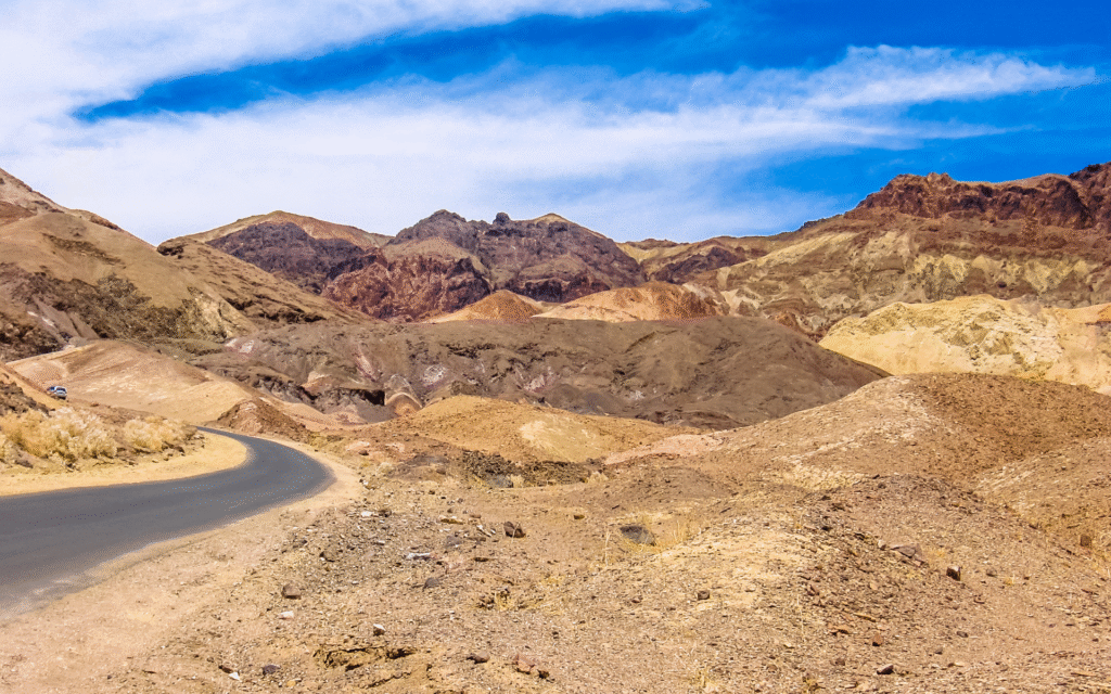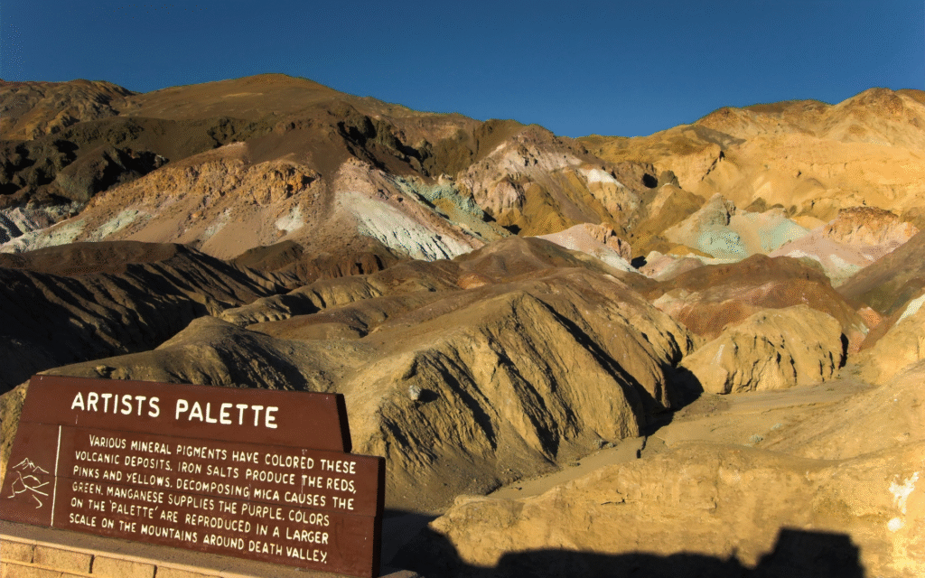 Le colline policrome di Artist’s Palette devono i loro colori alla presenza di minerali ossidati: il rosso deriva dal ferro, il verde dai cloruri, il viola e il rosa da composti di manganese. Queste sfumature raccontano una lunga storia di metamorfismo e alterazione idrotermale, indicando che la valle non è solo un deserto, ma anche un archivio minerale degli antichi processi interni della Terra.